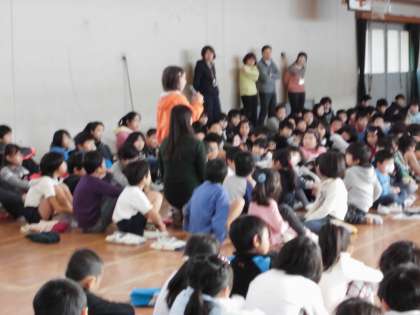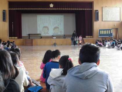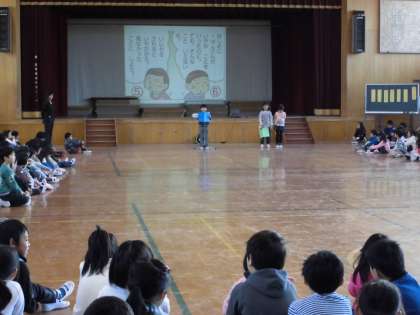 「こんなこと ありませんか?」という教師による役割演技を見た後で,1年生が作文発表をしました。先日の人権集会(低学年部)で考えたことを発表してくれました。