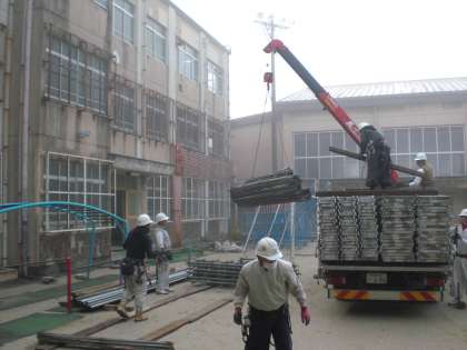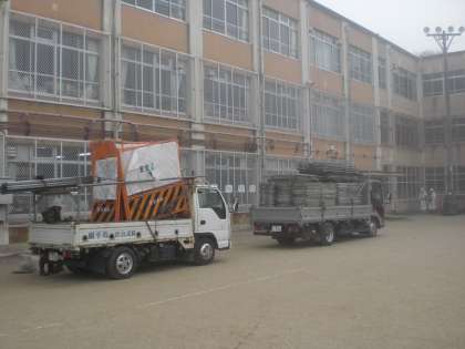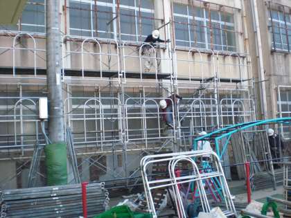 昨日,文書でお知らせしましたように窓枠の改修工事が今日から始まりました。工事期間中は何かとご不便・ご迷惑をお掛けしますが何卒よろしくお願いします。