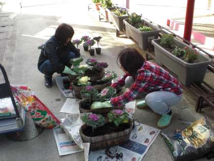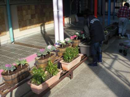 地域の方から見事な葉牡丹をたくさんいただきました。早速,教職員で植えさせていただきました。