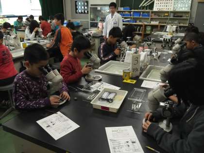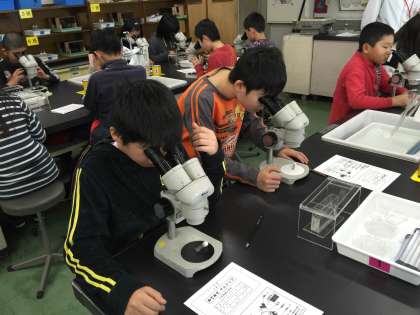 1組は,アルテミアの観察をしました。双眼実態顕微鏡を上手に使っていました。