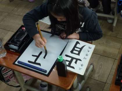 0112 3年生 書き初め 公開日 2016/01/14 更新日 2016/01/14 学校の様子 今日の書写の時間は書き初めでした。 以前にしたのは書き初め展用の書き初めで,今回は正真正銘の書き初めです。 みんなで「正月」と書きました。 「正」も「月」もバランスが難しく,悪戦苦闘していました。 清書した作品は,来週の自由参観日に教室に掲示予定ですので,ぜひご覧ください。