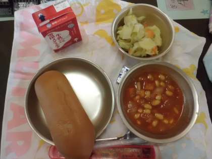大豆が苦手な児童は,大豆には骨や歯を丈夫にしたり,お腹の調子をよくしたりする働きがあることを頭におきながら,今日の給食を食べていました。