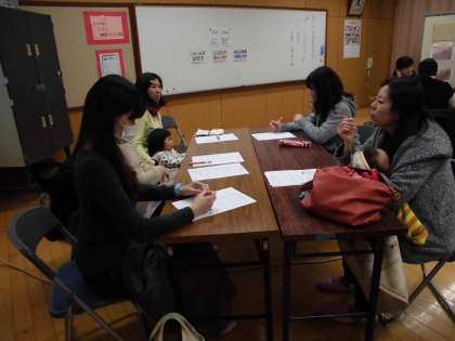 ふれあいサロンに入ると,参加されている保護者の方のお顔が笑顔で,家庭教育学級でよい時間を過ごされているのだと感じました。