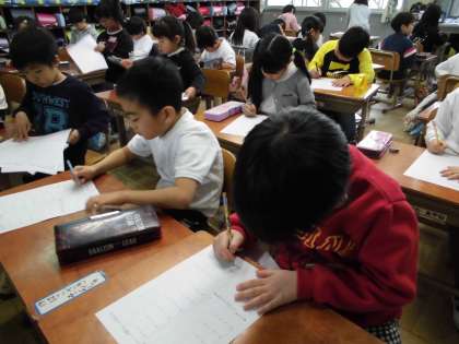 1年生は,初めての計算大会ですが,担任の先生からの話を聞いて,真剣に問題に向き合っていました。