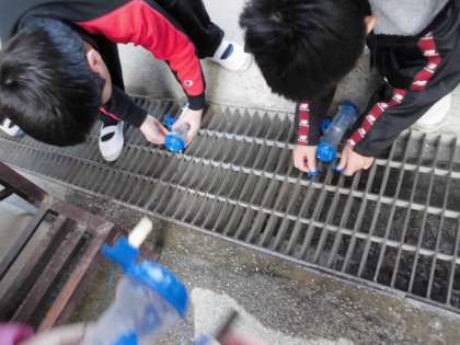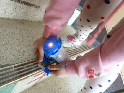 そこで教室を飛び出し,学校のあらゆる場所で「電気を通すもの」と「電気を通さないもの」を調べました。