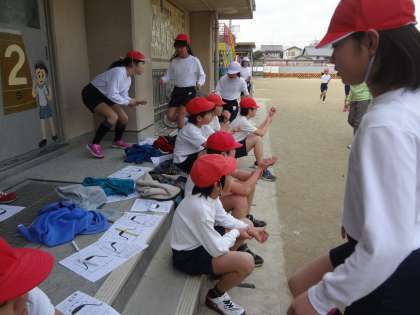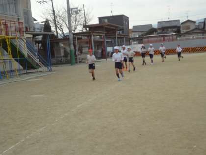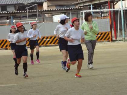 持久走の学習の様子です。 脈拍を測りながら,目標をする数値を目指してがんばっています。