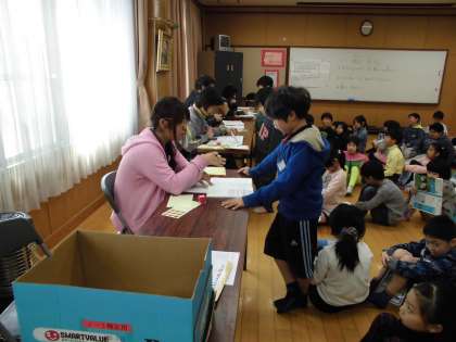 今日の4校時,2年生のノート検定がありました。どのノートもしっかりと書けていましたよ。担当の先生方から,スタンプやシールをもらって,笑顔の2年生でした。