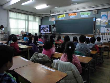 あかぐみ・あおぐみに分かれて,先生から学校の1年間の話を聞きました。どんな学習があるか聞きました。お歌を歌ったり,折り紙をしたり,絵を描いたりしました。とても緊張したことと思います。どの子も,姿勢よく,話をしっかりと聞いてくれていましたね。