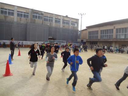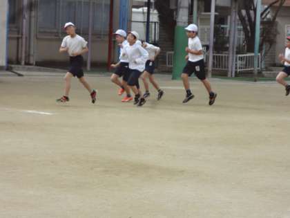 ジョギングタイムと体育の持久走の様子です。