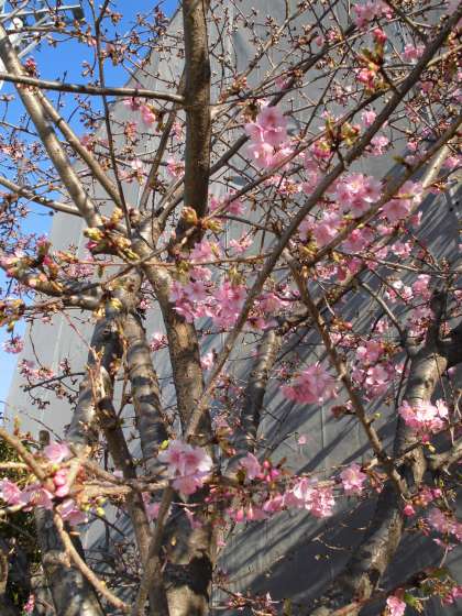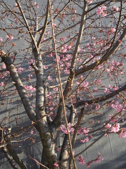 本校の校庭に「河津桜」の花が咲き始めています。