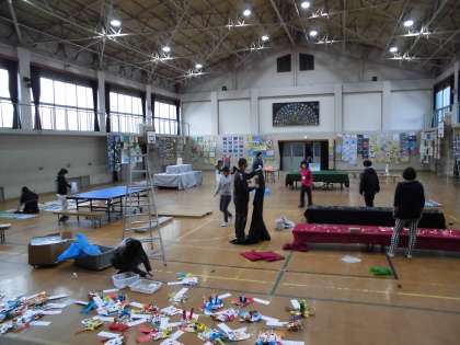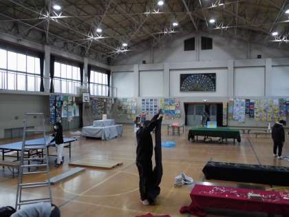 体育館にたくさんの作品を工夫して掲示する予定でいます。
