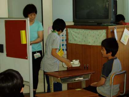 本校若草学級では,道徳の時間を使って,礼儀作法の学習をしています。