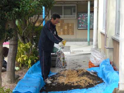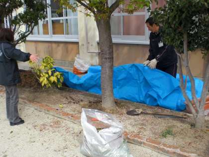 来年度の「花と緑あふれる学校推進授業」の実施に向けて,理科担当教員と管理用務員が,準備を進めてくれています。