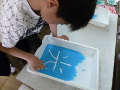 前日の1組と同様,砂文字と水書用紙に初チャレンジしました。