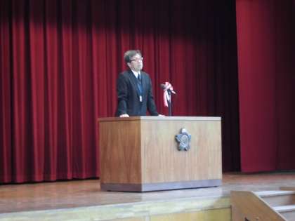 次に,校長先生のお話です。自分の目標をもって1年間過ごせたか振り返りをしました。PDCAサイクルについてのお話もありました。