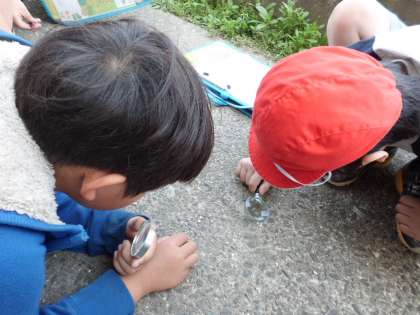 3年 理科 しぜんのかんさつ 公開日 2016/04/21 更新日 2016/04/21 学校の様子 学校の中で生き物と植物探しをしました。 初めて虫めがねを手にして大喜びの子どもたち。 知っている生き物や植物も,よく見ると新たな発見がたくさん! みつけたよカードに気付いたことを書きました。