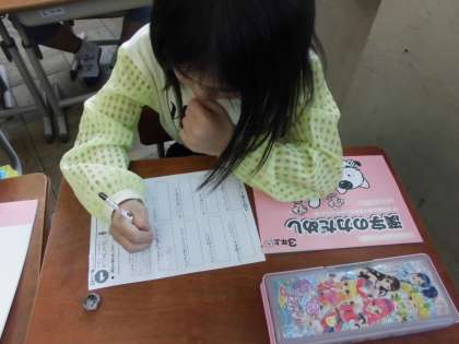 3年 漢字テスト 公開日 2016/05/02 更新日 2016/05/02 学校の様子 3年生になり,新しい漢字をたくさん習いました。 画数が多いものや,読み方がたくさんあるものなど,だんだん難しくなってきています。 そして,いよいよ漢字テストがスタート! 10題ずつたしかめテストをしています。 はね,とめ,はらいに気をつけてていねいに書いています。