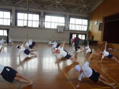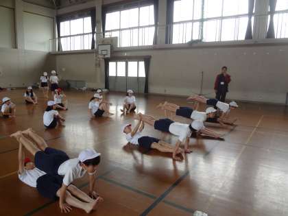 組体操の練習の様子です。 運動会まで一カ月になりました。 頑張ってほしいと思います。