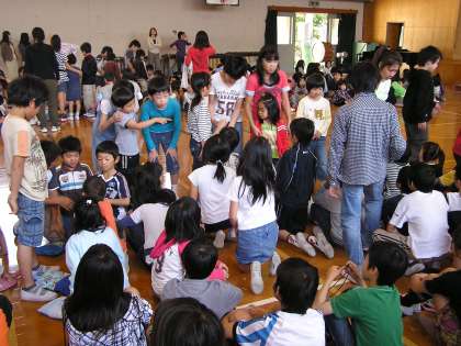 1年生の子どもたちにとっては,なかよしグループで集まるのはこれが初めてです。運動会や児童集会,その他の行事で1年生から6年生までが一つのグループになり,一緒に活動していきます。