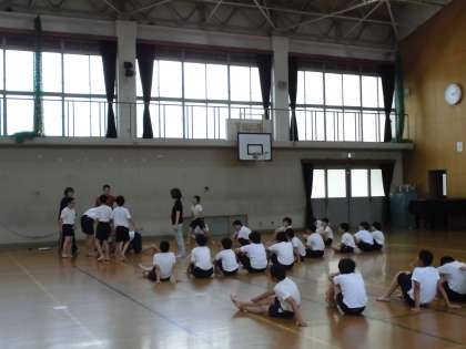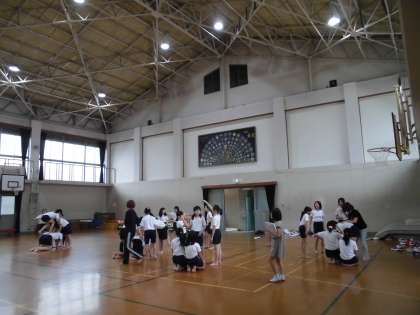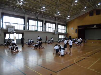 6年生の組体操の練習風景です。みんなで声を掛け合ったり,つらい場所を進んで立候補したり全体のことを考えた行動がとれていました。