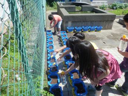 0513 1年生 アサガオのたねまき 公開日 2016/05/16 更新日 2016/05/16 学校の様子 5月13日(金)アサガオの種をまきました。 「早く大きくなあれ。」「げんきに育ってね。」「きれいな花をさかせてね。」 たくさんの思いを込めて,種をまき,お水もたっぷりあげました。 芽が出るのが楽しみです。