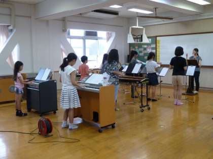 音楽部は活動日ではないですが,今週土曜日に迫った運動会で入場曲を演奏する大役をつとめるため,参加できる子だけで練習していました。