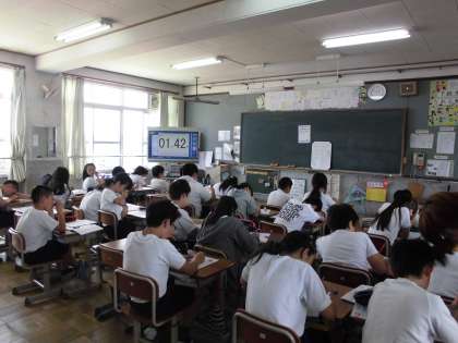 昼の帯タイム「算数道場」の様子です。真剣に問題と向き合っていました。