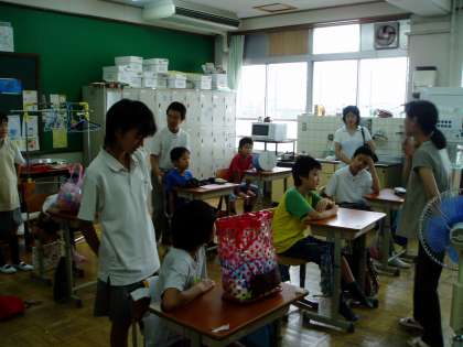 大淀中学校で、木工作品を作ったり水泳学習をしたりしました。
