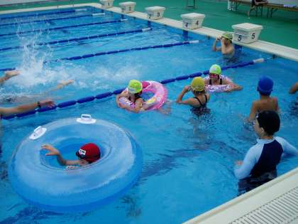 少し深かったですが、ビート板やうき輪を使って、すいすいと気持ちよく泳いでいました。