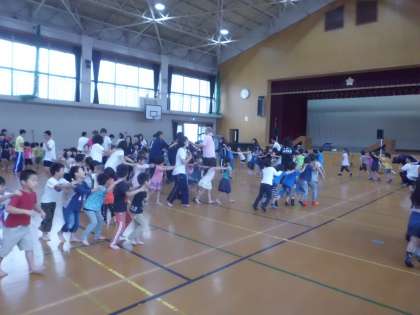 1年生だけでなく,いろいろな保育園の友達や,職場チャレンジ体験に来ていた中学生とも一緒に遊び,楽しい時間になりました。