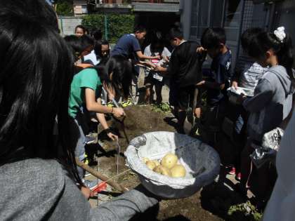 学習で使ったのは葉ですが,土の中ではちゃんと立派なジャガイモ育っていました。