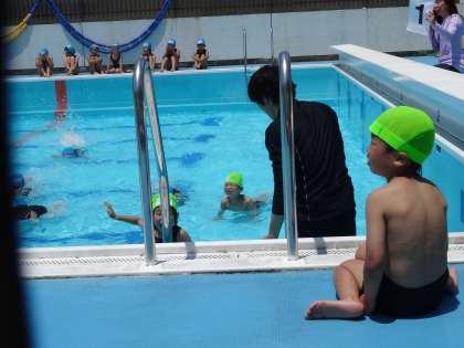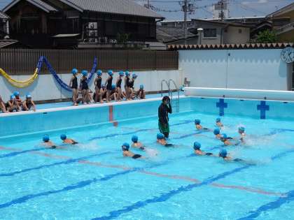 昨日は,残念ながら気温が低くて実施できなかった水泳学習が,今日は実施することができました。子どもたちの歓声が上がっていました。