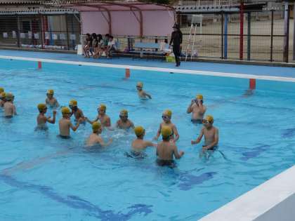午前中は気温が低くて,残念ながら6年生はプールに入れなかったけど,午後から太陽も少し出てきて,4年生はプールに入ることができました。
