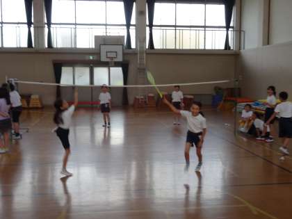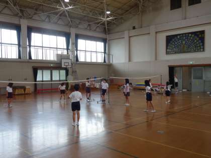 今日の放課後は,バドミントンです。4〜6年生が暑い中,ゲームを楽しんでいました。さすがに6年生は上手でした。