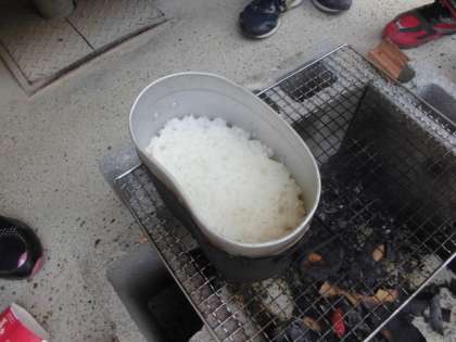 先週雨でできなかった飯盒でご飯を炊く練習をしました。