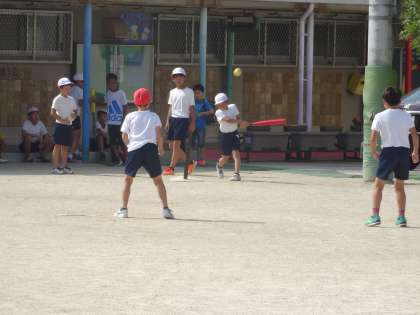 青空スポーツクラブでは,ピッチャーのいない野球みたいなゲームをやっていました。