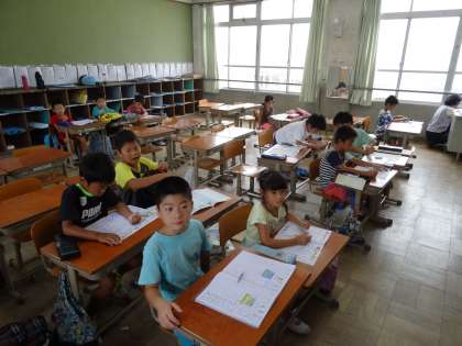 夏休みに入りました。今日の午前は,少し天気が悪いのですが,朝から各学年学習会を行っています。