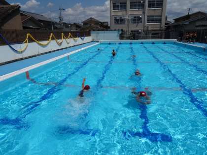 いよいよ今年度最後のプールです。今日の午前は,高学年の検定日。昨年度より,さらに高みを目指してください。