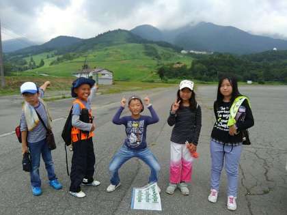 オリエンテーリングのポイントにいると、山に牛の絵がかかれているところがありました‼