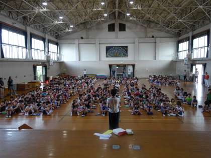 9時より体育館で朝会がありました。校長先生のお話や図工の表彰・転入生の紹介・新しい先生の紹介などを行いました。