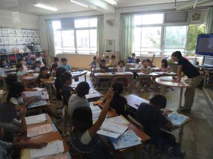 3・4校時の様子は,クラスや学級によって異なっていました。夏休みの宿題の点検をしているクラスや学級,さっそく力だめし(プリント)をやっているクラスや学級,みさきの家のグループについて話し合うクラスや学級など様々でした。