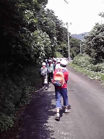 予定よりも少し遅れてハイキングが開始されました。頂上を目指し,頑張っています。