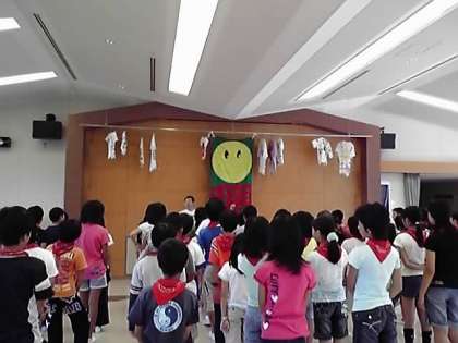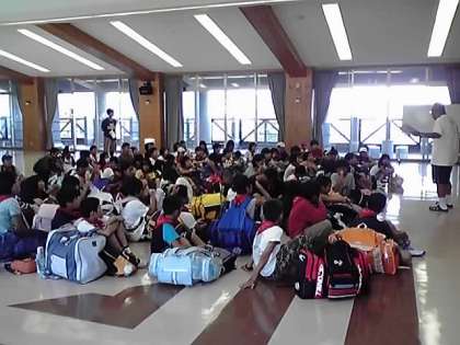退所式の様子です。お世話になった「自然の家」ともお別れです。