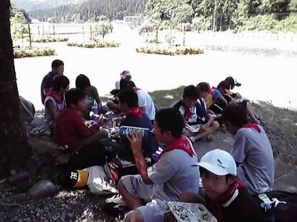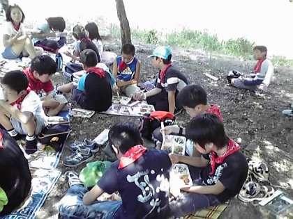 朝倉氏遺跡に到着し,みんなで食べる最後の食事をしています。昼食後は遺跡を周り,予定通り13時頃に出発の予定です。