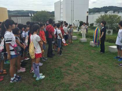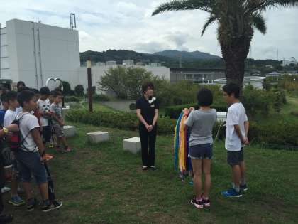 北淡震災記念公園に着きました。 みんなで心を込めて折った千羽鶴を贈りました。