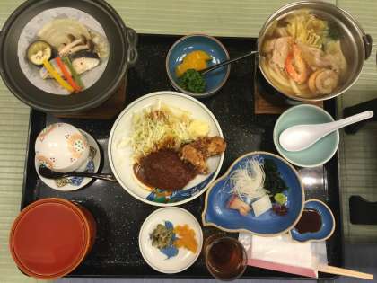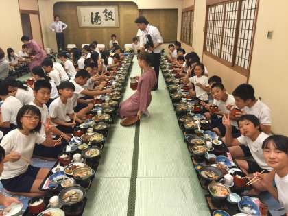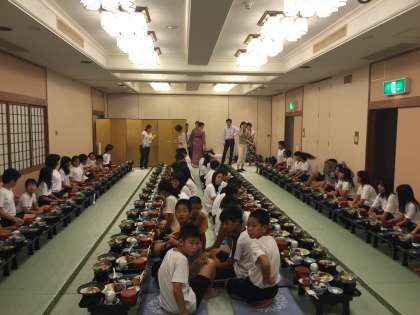琴平花壇ホテルで子どもたちは,入浴を済ませ,いよいよ楽しい夕食タイムです。