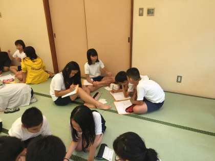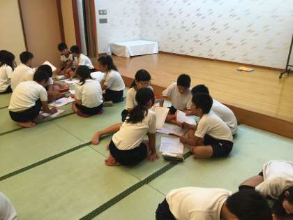 夕食の後は,今日,観てきたことや調べたこと、わかったこと、考えたことを班で相談してまとめ,発表しました。そのあと班ごとに今日の反省会をして就寝です。