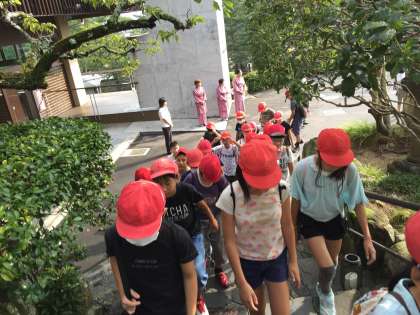 みんなでしっかりお礼のあいさつをして,琴平花壇ホテルを出発しました。