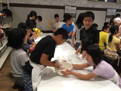 中野うどん学校でのうどん打ち体験の様子の続きです。