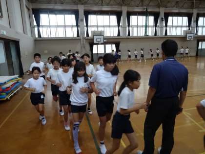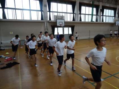 今日の放課後には雨が降ったので,今日の「走ろう会」は体育館で行いました。
